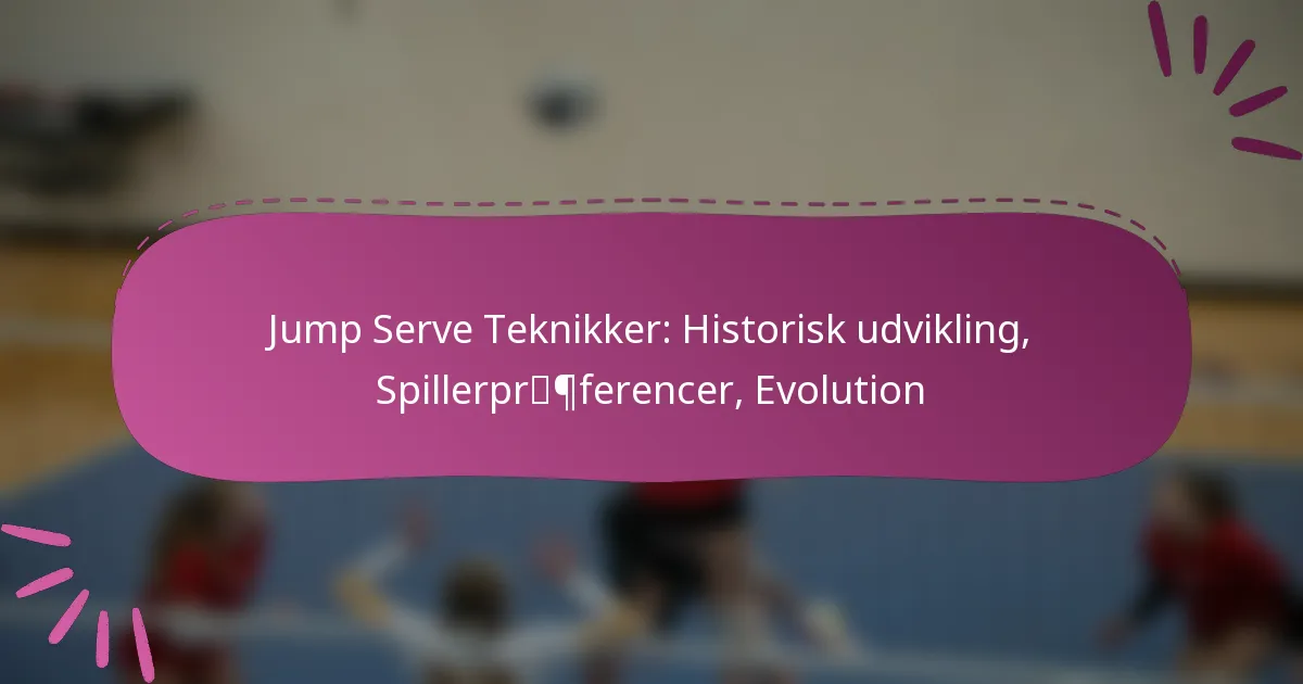Jump serve har gennemgået en betydelig udvikling siden sin opståen, hvor den har trukket på indflydelser fra både volleyball og tennis. Denne teknik har tilpasset sig over tid på grund af fremskridt inden for spillertræning, træningsstrategier og et stigende fokus på kraft og præcision, hvilket gør den essentiel i moderne volleyball. Individuelle spillerpræferencer former yderligere udførelsen af jump serves, hvilket afspejler personlig stil og strategiske mål i konkurrencepræget spil.